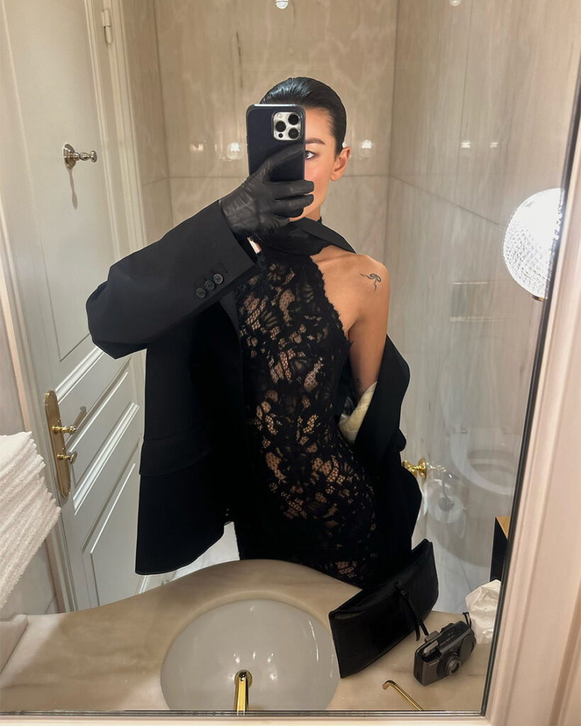 Iza kamere, presek njenih uticaja daje stilove prožete sentimentalnošću i notom melanholije. Svaka odluka — koje brendove nosi, sa kojim brendovima sarađuje, kako stilizuje sebe i druge — deo je iste logike. Kao da su moda i umetnost uvek dopunjavale jedna drugu, baš kao što radi njena majka.