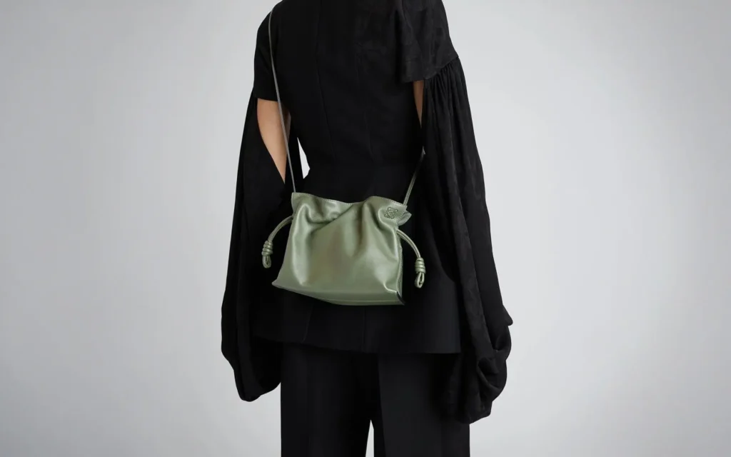 Street style koji je pratio revije SS26 pokazao je jednu doslednost: drawstring pouch se nosi u ruci ili prebačena preko ramena na dugačkoj vezici, uz outfite koji su inače precizni i svedeni. Torba je tačka na kraju rečenice. Funkcioniše upravo zato što ne pokušava previše: mekana forma, minimalan brending, materijal koji govori sam za sebe.