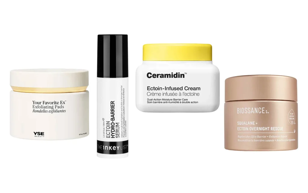 Savremena kozmetička industrija prepoznala je njegov potencijal, i danas se može naći u mnogim kremama, poput Ceramidin Ectoin-Infused Face Cream, koja zahvaljujući kombinaciji ceramida i ektoina omekšava i hrani kožu. U The Inkey List Ectoin Hydro-Barrier serumu ovaj sastojak postaje saveznik u borbi protiv urbanih stresora, dok se noćne kreme poput Biossance Ectoin Overnight Rescue oslanjaju na njegovu sposobnost da umiri crvenilo i podstakne regeneraciju dok spavamo. Čak i u formulama sa aktivnim kiselinama, poput YSE Beauty Exfoliating Pads, ektoin je tu da ublaži iritacije i sačuva balans kože nakon eksfolijacije.
