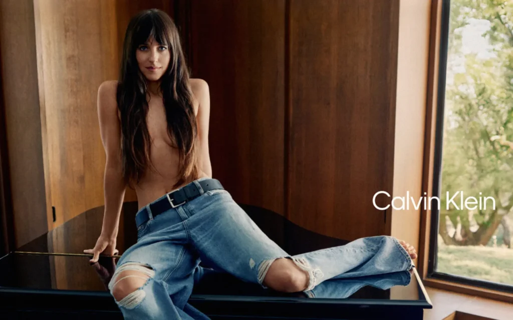 Ovakav pristup ima snažan kontinuitet u istoriji brenda. Brooke Shields je osamdesetih pomerila granice jednostavnom, ali provokativnom porukom. Kate Moss je devedesetih redefinisala senzualnost kroz krhkost i minimalizam. Justin Bieber je kasnije doneo digitalnu eru viralnosti, ali sa istom taktikom. Dakota Johnson nastavlja u istom ritmu. Njene poze nisu naglašene, farmerke su blago zgužvane, pogled povremeno skreće van kadra. Kadrovi deluju kao da su uhvaćeni između trenutaka, kao da kamera beleži nešto što nije planirano. U tom prostoru između spontanosti i kontrole kampanja pronalazi svoj ton.