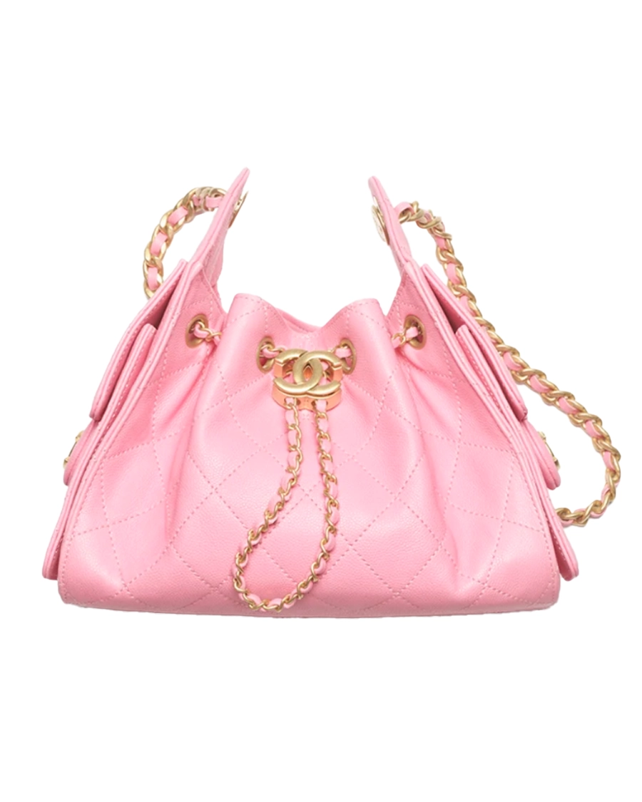 Pink mini Chanel 25 je letnja boja koja kod Chanela izgleda ženstvenije nego ikad. Ovo nije pastelni šapat — to je pink koja ima jasno prisustvo i koja, zahvaljujući zlatnim metalnim detaljima i zrnatoj teksturi kože, ostaje čvrst karakter i kada je boja nežna. Uz beli autfit, uz camel, uz sve što je neutralno i čisto — pink mini Chanel 25 je torba koja donosi toplinu.