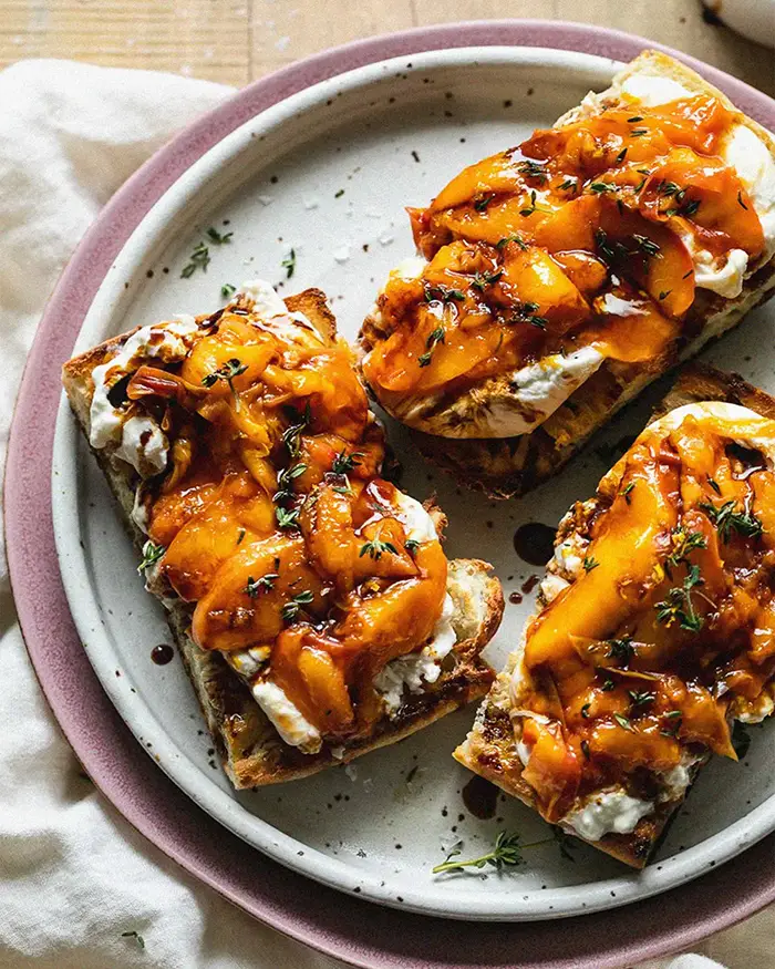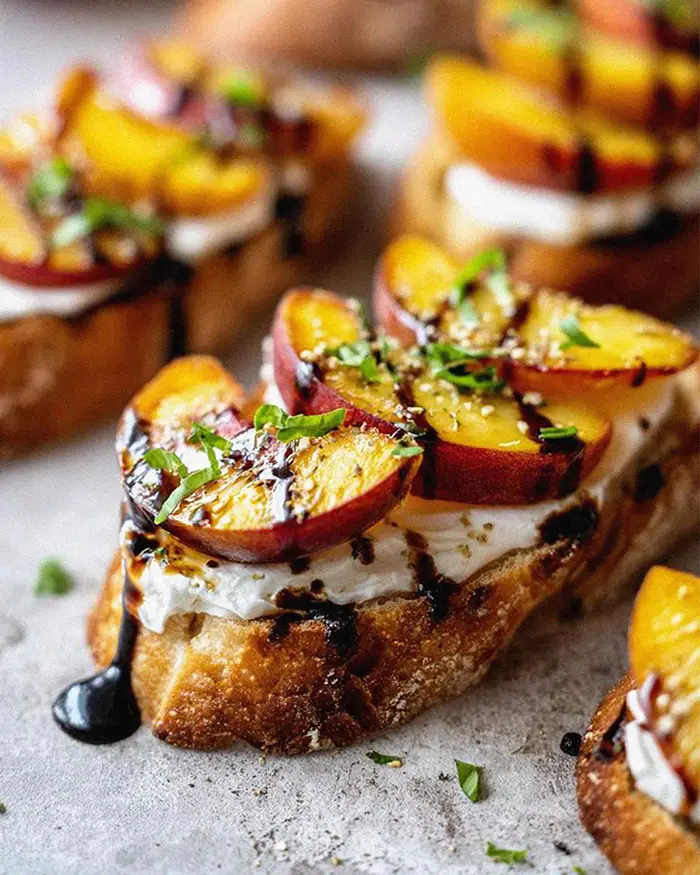 Ako tražite savršen zalogaj za početak večeri ili lagano predjelo, brusketi sa buratom i breskvom su odgovor. Hleb je vaše platno, burata potez četkice, a breskva zlatna ukusna nota koja sve povezuje.