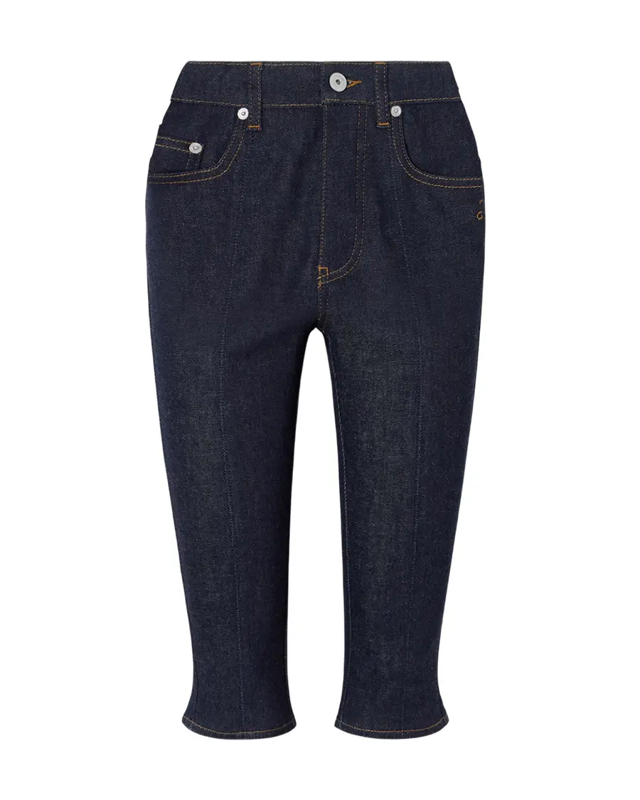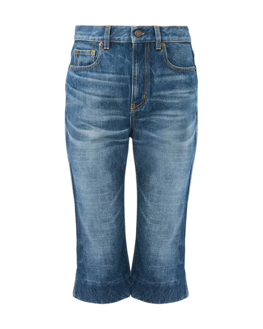 Chloé High-Rise Capri Jeans u stonewash organskom pamučnom denimu donose strukturu kakvu očekujete od kuće koja postoji od 1952. Visoki struk, klasičnih pet džepova, Chloé gravirana dugmad, kožna pločica s imenom brenda na poleđini i split završetak pri dnu koji komadu daje savremenu notu, a da narušava klasičnu osnovu. Ove pantalone se kupuju jer kapri ovakvog kvaliteta i krojačke preciznosti mogu biti u vašem ormaru još deset godina.