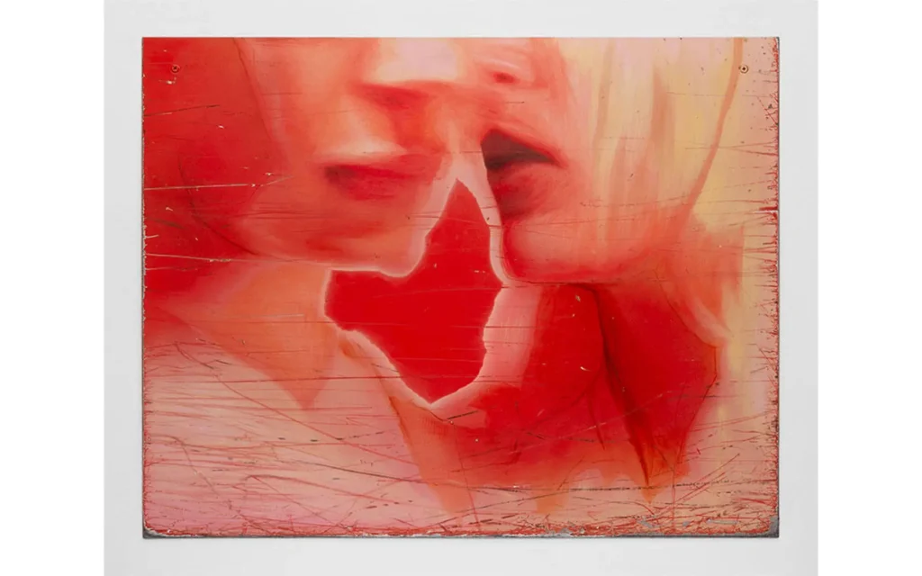 Lipp radi na čeliku, na materijalu koji pamti udarce. U radu Sleep iz 2016. godine, umesto četkice koristi čeličnu vunu. Površina izgleda kao da je štampana, kao da je izašla iz mašine — a zapravo je ručno, sporo, gotovo tvrdoglavo građena. Deluje kao da bi se raspala pod prstima. U radu New York Doll iz 2023. godine, ogrebotine nastale vučenjem čelika po asfaltu postaju deo kompozicije. Grad ulazi u sliku. Na izložbi Base u londonskom Soft Opening, Lipp ide još dalje — slika na čeličnoj medicinskoj kutiji, trlja papir o cement, ostavlja tragove trenjem. Njegove površine podsećaju na piksele, na kopije kopija, na slike koje su prošle kroz ekran pa izgubile boju usput.