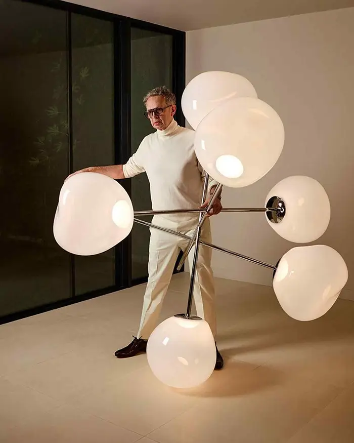 Iako je nadaleko poznaz po nameštaju, ono što je možda najviše obeležilo njegov uspeh, jeste svetlo. Lampe koje radi su deo atmosfere, prostori unutar prostora. Najpoznatija kolekcija, Melt, donosi lampe koje izgledaju kao da se tope, ogledala u plamenu, balone stakla zamrznute u trenutku pokreta. Melt lusteri i zidne lampe postali su statusni simboli savremenog enterijera, podjednako kod arhitekata i kolekcionara. Pored Melt serije, tu su i Beat lampe inspirisane indijskim tradicijama obrade metala, kao i kolekcije Copper i Mirror Ball, koje su dizajn pretvorile u spektakl refleksije.