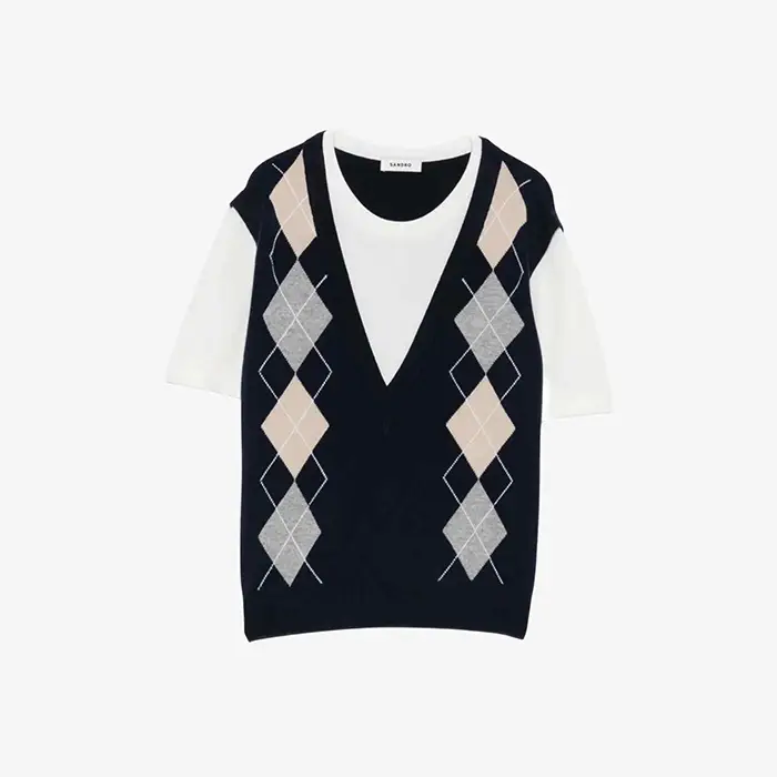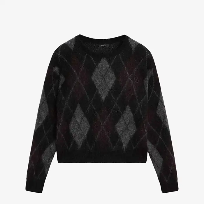 Pleteni džemper od alepaka vune sa dezenom rombova