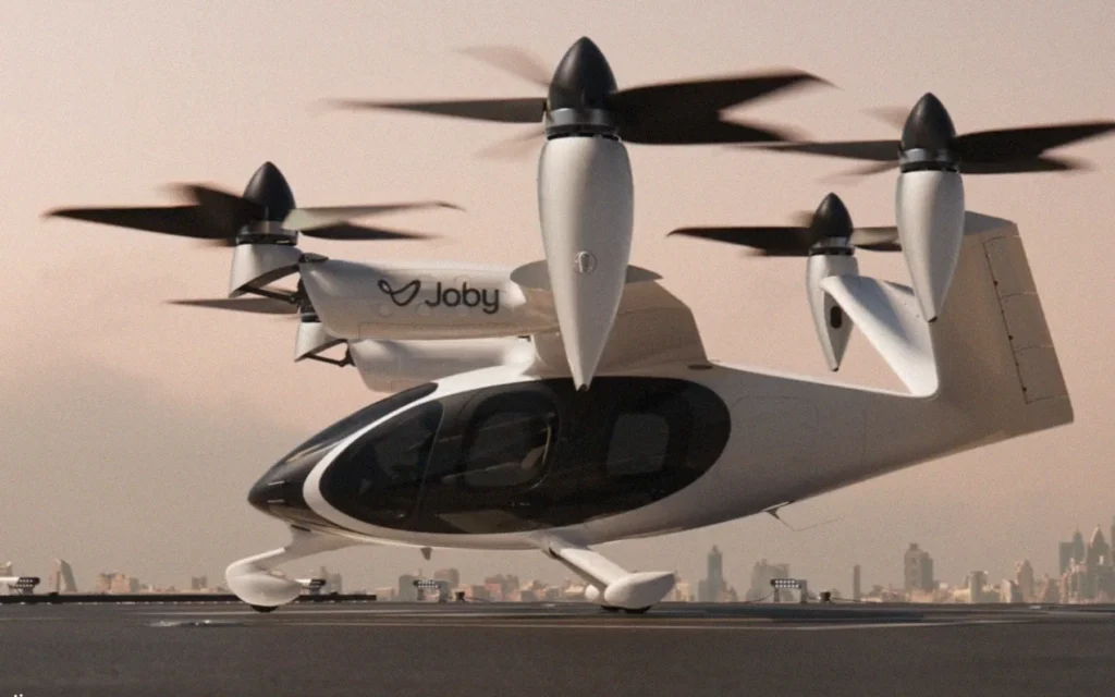 Joby eVTOL je električni avion koji vertikalno uzleće i sleće — bez piste, bez buke konvencionalnog helikoptera. Šest petokrakih propelera na električni pogon obezbeđuju vertikalni uzlet i letenje, a zatim se zarotiraju napred za horizontalni let. Konstrukcija je od karbonskih vlakana, upravljanje je fly-by-wire, a litijum-jonske baterije napajaju čitav sistem. Avion može da preveze pilota i četiri putnika sa ručnim prtljagom, leti brzinom do 320 kilometara na sat i ima domet od 160 kilometara na jednom punjenju. Tokom leta na visini od 500 metara, buka iznosi svega 45 decibela — otprilike koliko buka frižidera. Ovo nije nešto što se čuje iznad grada.