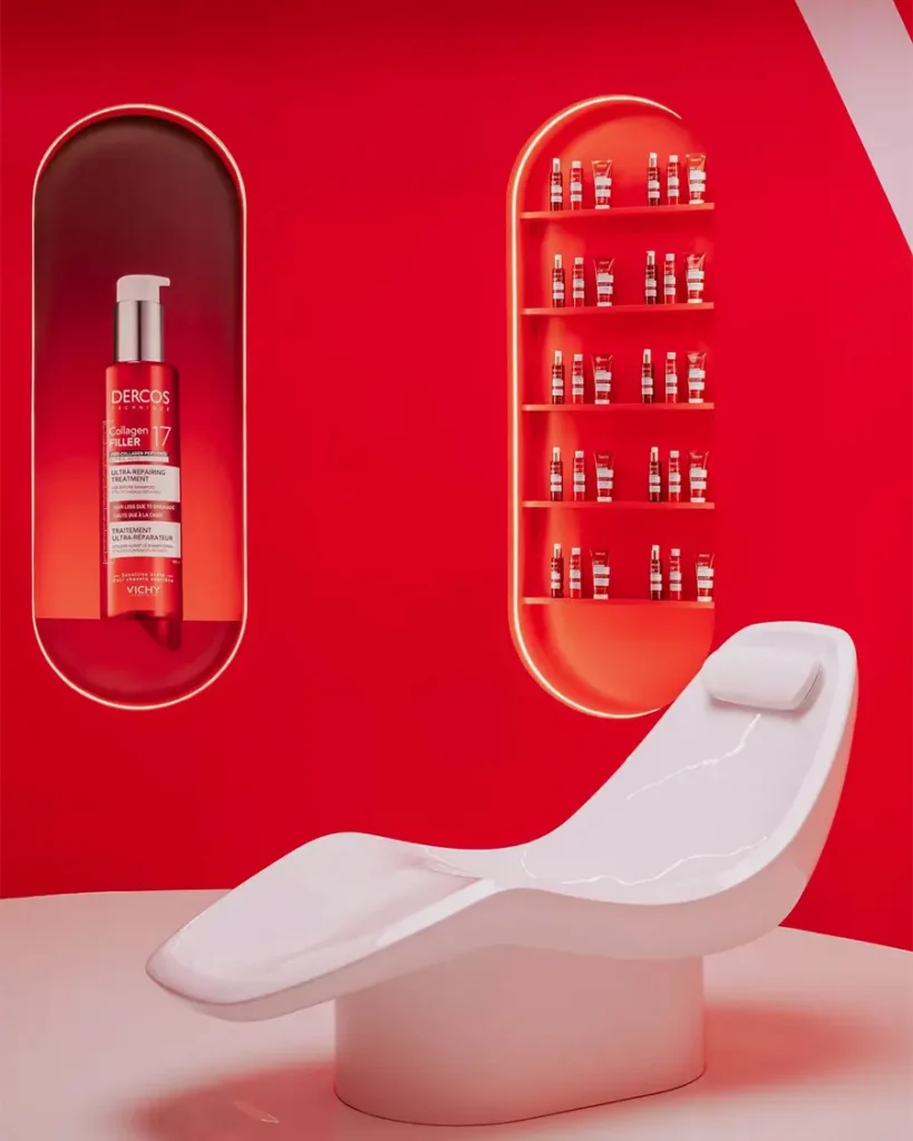 Prostor je bio podeljen u nekoliko tematskih zona, svaka posvećena jednom aspektu dugovečnosti. U Collagen Baru posetioci su mogli da nauče kako funkcionišu kolagenski suplementi i kako utiču na strukturu kože. Collagen Lab prikazivao je kako nova linija Collagen 16 deluje na znakove starenja, dok su druge prostorije povezivale negu sa oralnim suplementima i savremenim dijagnostičkim tehnologijama. Iza ovog koncepta stoji dugogodišnje istraživanje: tehnologija Longevisia, koju je razvio Vichy, nastajala je gotovo dve decenije i potkrepljena je sa više od sto kliničkih studija.