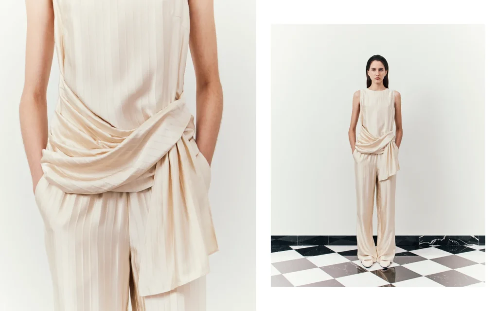 Loulou de Saison nema vidljiv logo. Nema dramatičnih kolekcija sa jednim „it“ komadom sezone. Ima prirodne tkanine — kašmir iz Mongolije, koža i pamuk iz Evrope — i precizno krojen komad koji izgleda skupo i stilski parižanski. Harrouche je izgradila brend u digitalnom prostoru pre nego što je počela da prodaje u fizičkim prodavnicama i buticima, što je dalo posebnu vrstu razumevanja tržišta: znala je šta žene traže pre nego što su same to znale da artikulišu. Čisti krojevi, mekane nijanse, siluete koje prate telo. Ova estetika se opisuje kao „quiet luxury“ i to je stvarni princip prema kome se biraju materijali i projektuju oblici.